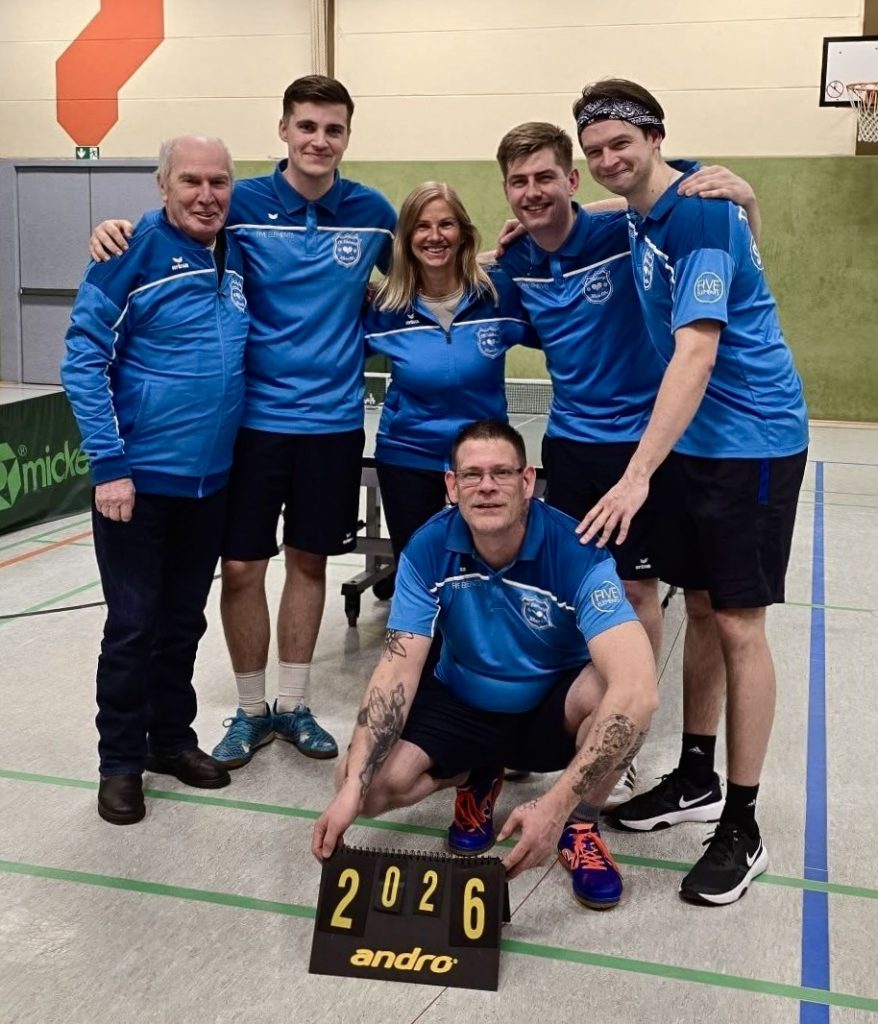 Unsere Meister 2026 :-) Veröffentlicht am 9. April 2026 von Christian Herzlichen Glückwunsch zur Meisterschaftunserer 5.Herren mit den Spielern Jörg Tatsch, Lukas Ohlendorf, Tim Strübig und Lukas Heiduk.